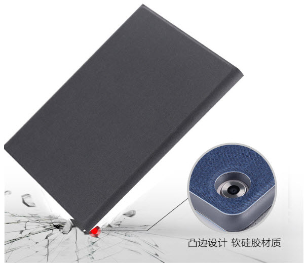 - วัสดุ หน้าปกทำจากหนัง PU คล้ายผ้ายีนส์ดู ด้านในบุเป็นหนัง PU เรียบ ช่วยรองรับกันกระแทกหน้าจอ